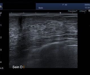 -L'échographie est souvent réalisé au décours d'une mammographie ; elle permet bien souvent de visualiser la glande mammaire, quand celle-ci est dense et moins analysable en mammographie.
